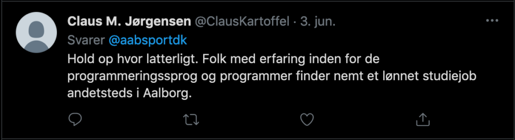 Superliga-klubben AaB valgte i går at dele et jobopslag på deres Twitter, hvor de søger assistenter til analyseafdeling omkring Superliga-staben.