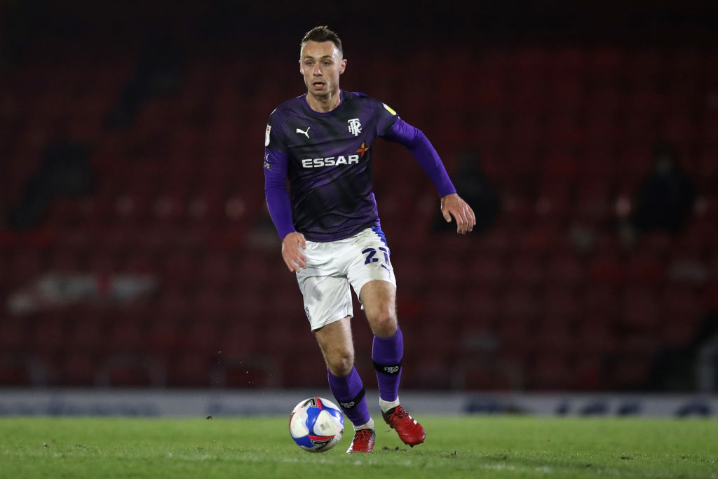 Tranmeres George Ray fik sig noget af en flyvetur i lørdagens League Two-møde med Exeter, hvor han blev sendt ud over baglinjen