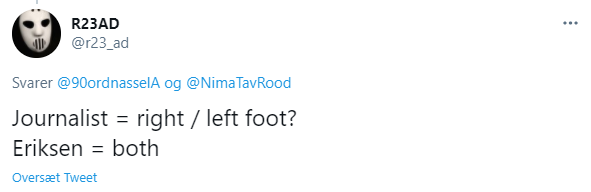 “Journalist: Højre eller venstre fod? Eriksen: Begge.”