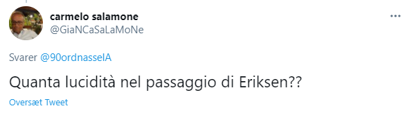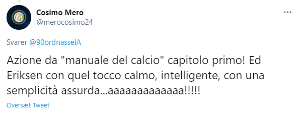 Undervejs i kampen var Eriksen da også indblandet i de sort og blåstribedes anden scoring, hvor danskeren efter et flot kontraangreb fandt Ivan Perisic i et overlap, og så kunne han servere bolden for fødderne af Lautaro Martinez der nemt kunne fordoble Milano-klubbens føring.