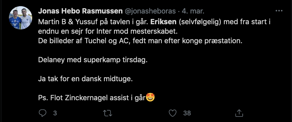 Derudover er der en spillere som Joakim Mæhle, der er taget til Atalanta og gør det glimrende, mens Kasper Schmeichel, Yussuf Poulsen og Pierre Emile-Højbjerg har holdt et voldsomt højt niveau hele sæsonen.