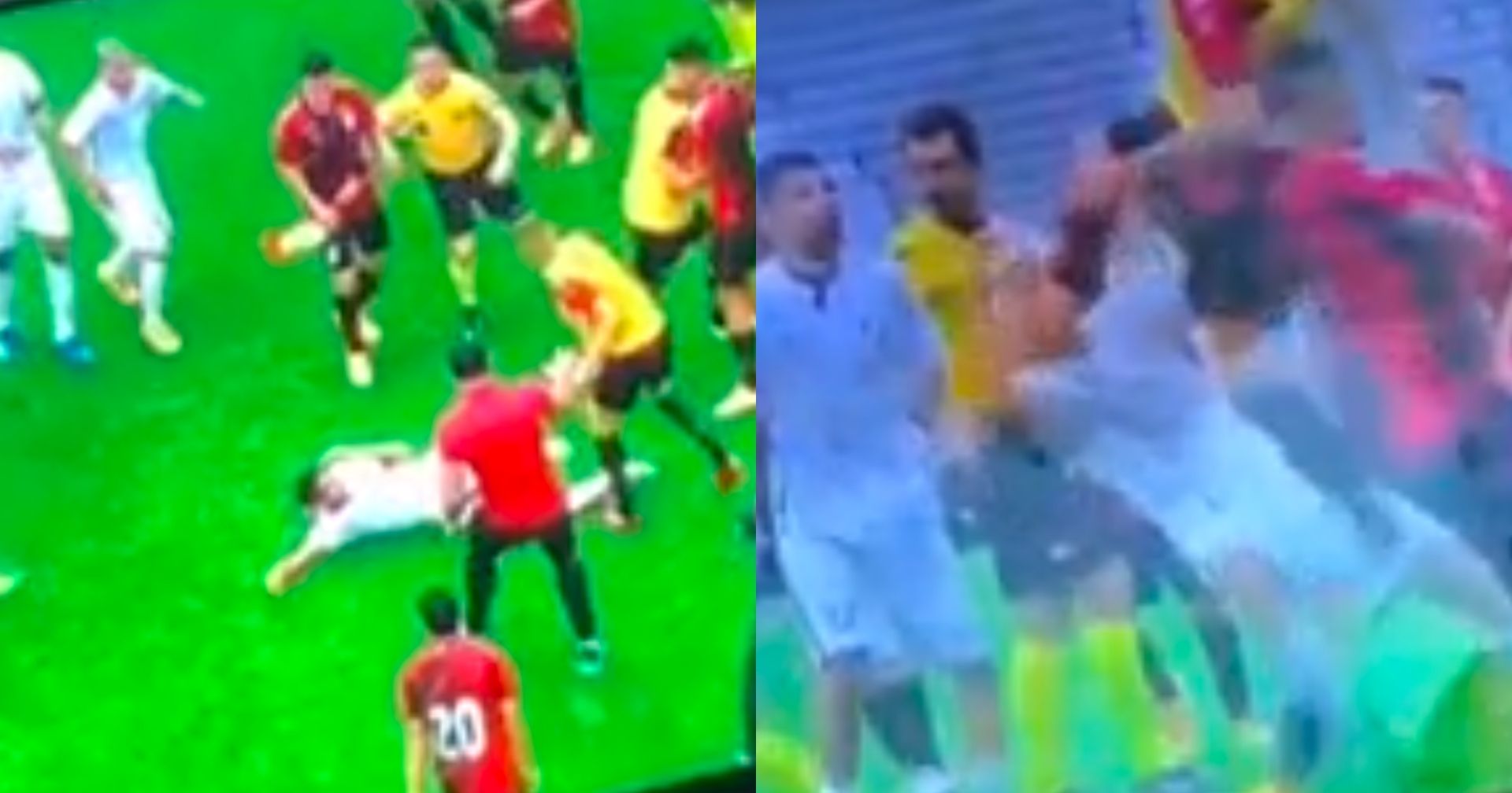 Her udbrød et masseslagsmål mellem de hold, hvilket resulterede i, at han hele ni spiller modtog et direkte rødt kort. Du kan herunder se, hvordan det hele eksploderede.