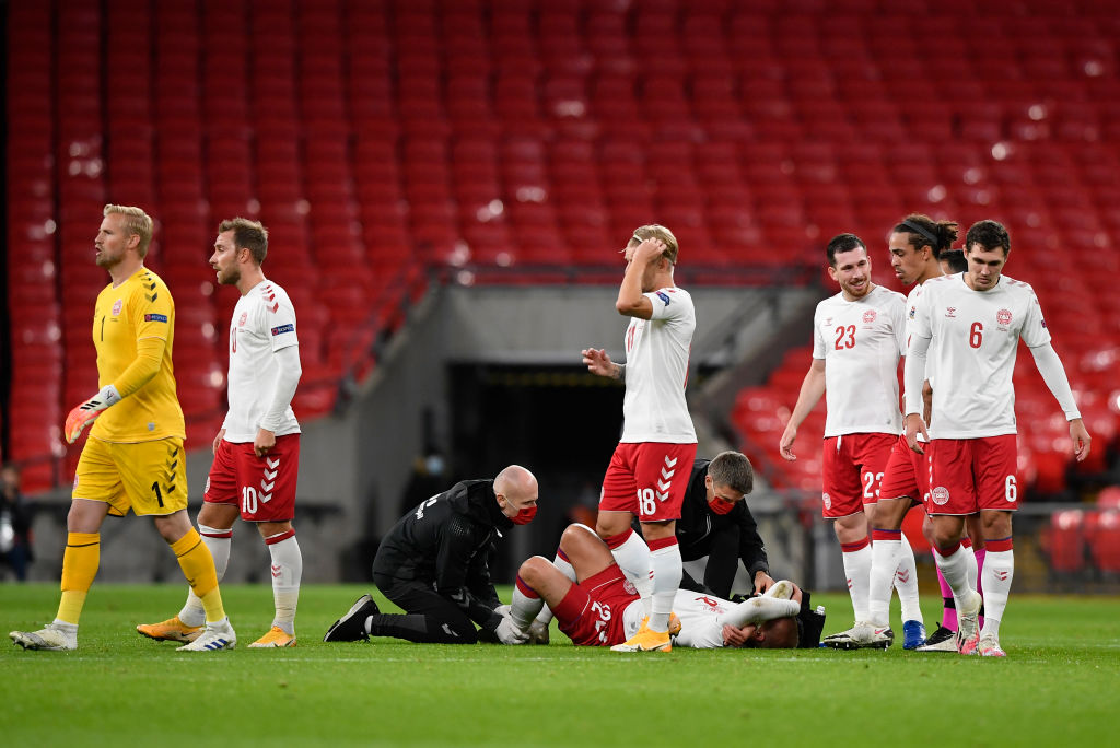 En voldsom tackling fra Englands Harry Maguire betød, at Kasper Dolberg måtte lade sig udskifte fra sidste uges landskamp i Nations League.
