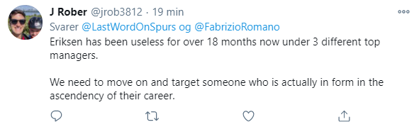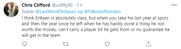 Christian Eriksen skulle dog være mere end opsat på at vende tilbage til Premier League, og man skulle også tro, at fansene gerne så den tidligere stjerne tilbage i klubben, men sådan forholder det sig umiddelbart ikke.