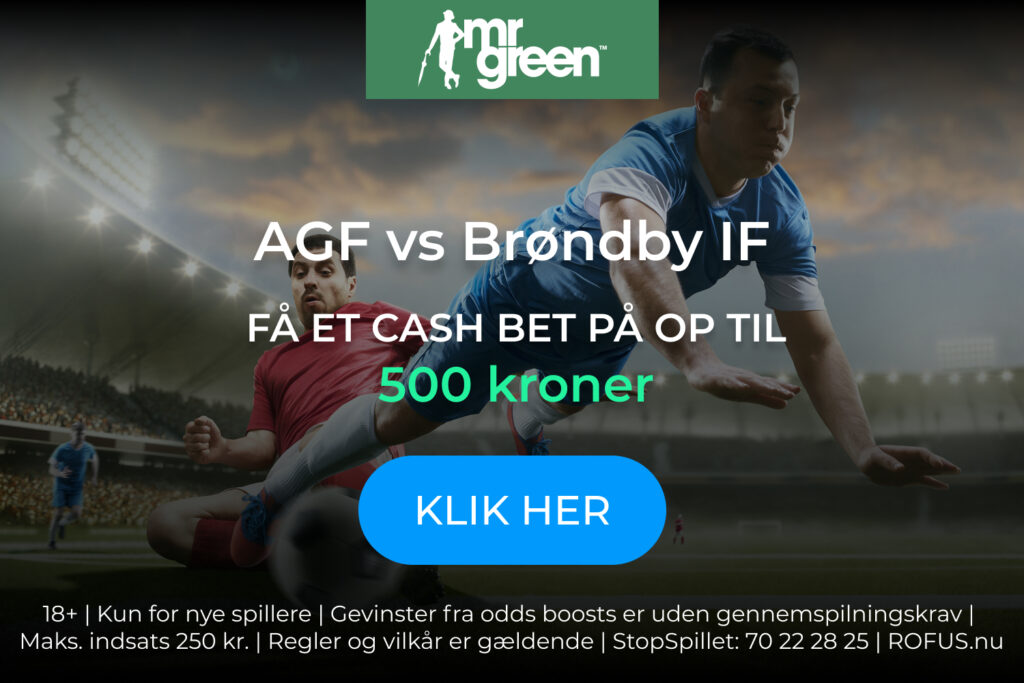 Mr. Green er gavmilde og har tilbudt et cash bet på hele 500 kroner til aftenens kamp mellem AGF og Brøndby. Læs her, hvordan du får det bedste ud af det
