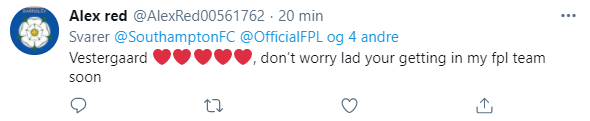 Til dagens kamp mod Newcastle er Vestergaard dog tilbage i startopstillingen, og det er noget, der begejstrer klubbens fans, som også glæder sig til at se Liverpool-lejesvenden Takumi Minamino i aktion.