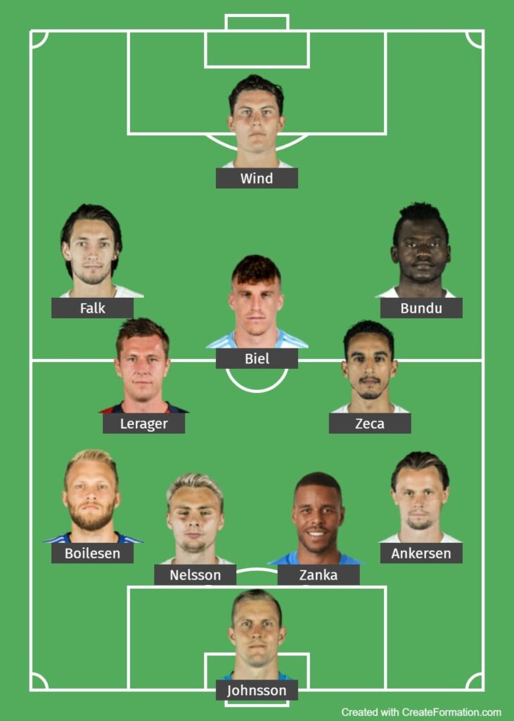 44 procent af stemmerne talte for ovenstående opstilling, hvor Nicolai Boilesen også bliver flyttet ud på venstre back for at give plads til Victor Nelsson i midterforsvaret.