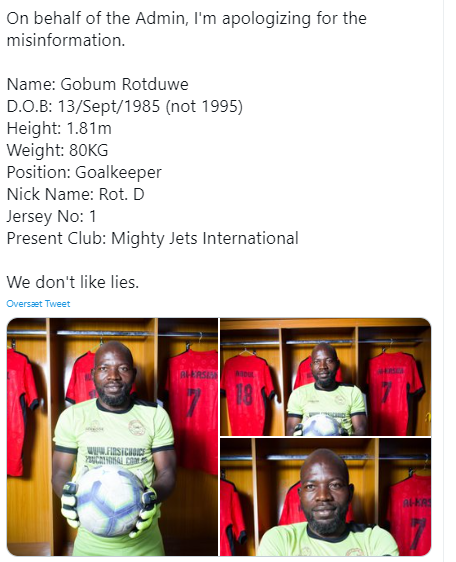 De har nemlig hentet en ny målmand ved navn Gobum Rotduwe, der skulle være 25 år gammel, men det er der altså flere fans, der har stillet spørgsmålstegn ved.