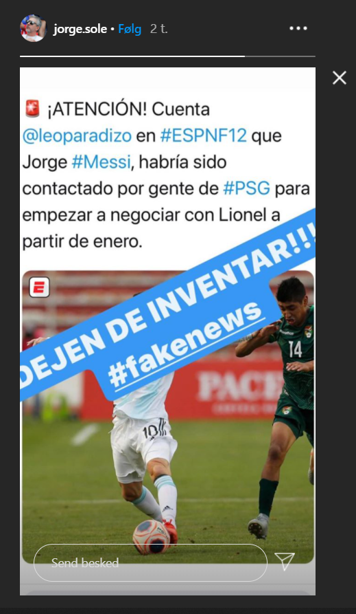 Men den historie kender Messi senior åbenbart intet til. På sin Instagram-profil erklærer han nemlig “nyheden” for direkte usand.