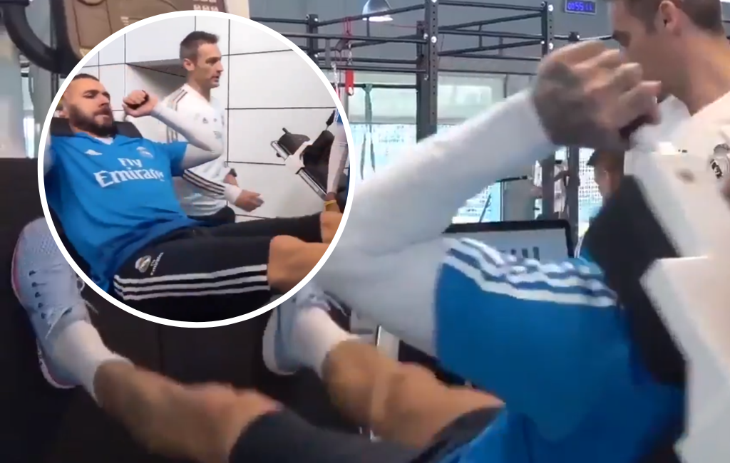 Lige nu florerer der en video på Twitter, der viser spillere som Luka Modric og Karim Benzema i styrkelokalet, hvor de træner benpres på en alternativ måde.