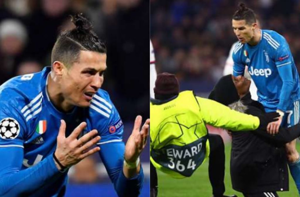 Cristiano Ronaldo var ikke just imponeret, da en baneløber bevægede sig ind på grønsværen for at tilbede sit store idol