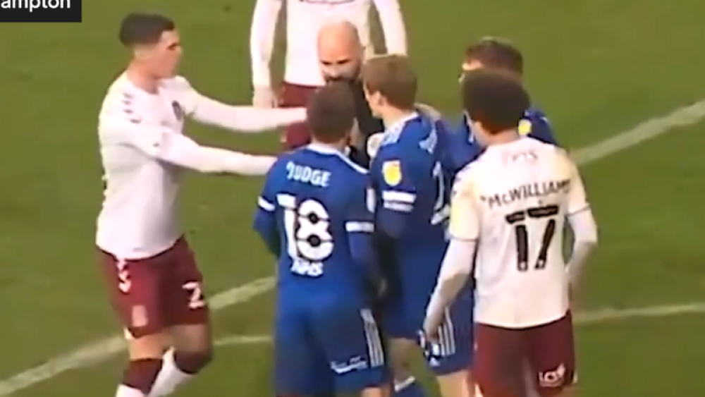 En engelsk dommer har fået fire dages karantæne som følge af et skænderi med en spillere i League 1-kampen mellem Ipswich og Northampton. Se episoden i videoen herunder