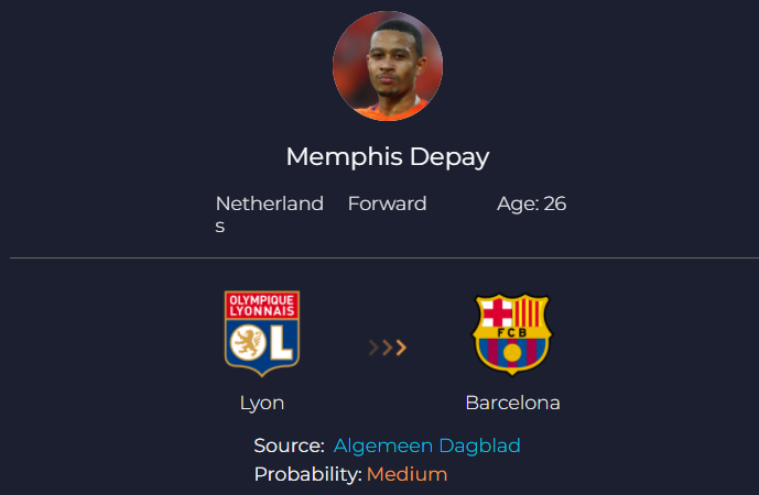 Depay había acordado términos personales antes de un cambio de verano de Lyon solo para que los problemas financieros del Barcelona pusieran fin a un posible acuerdo. Pero con el contrato del extremo que expira el próximo año, persisten los rumores de una movida del Camp Nou.