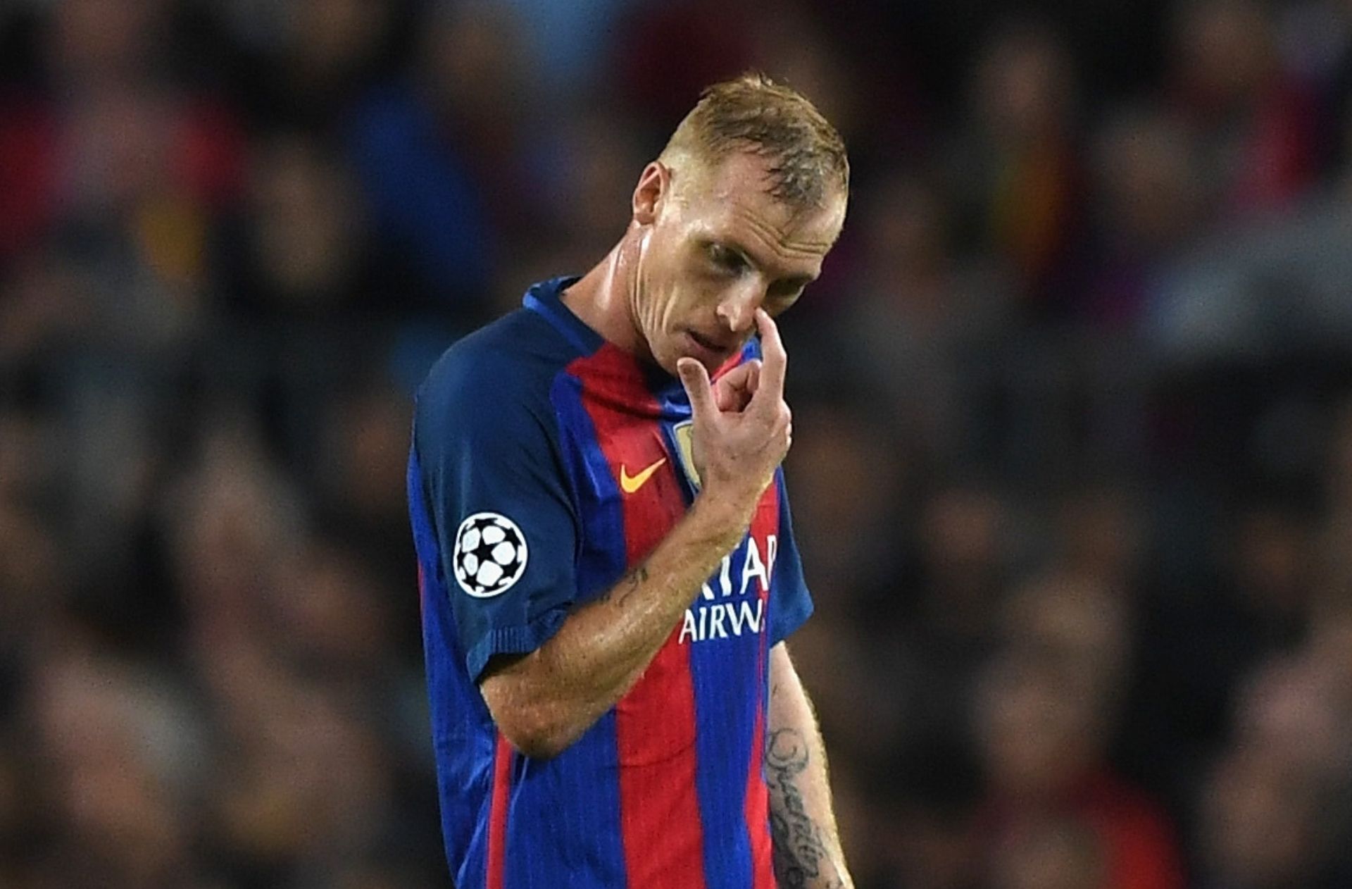 En su última aparición con el club, que se produjo sólo tres días después de la derrota en Málaga, el jugador de 37 años fue sustituido de nuevo cuando el gigante catalán fue eliminado de la Liga de Campeones a manos de la Juventus.